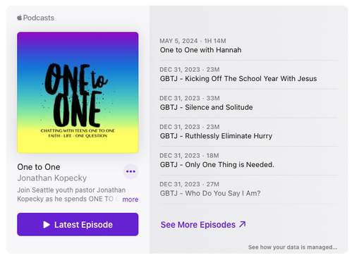 Learn more about Jonathan and conversation with teens as he invites youth onto his podcast to ask one big question and discuss life!
